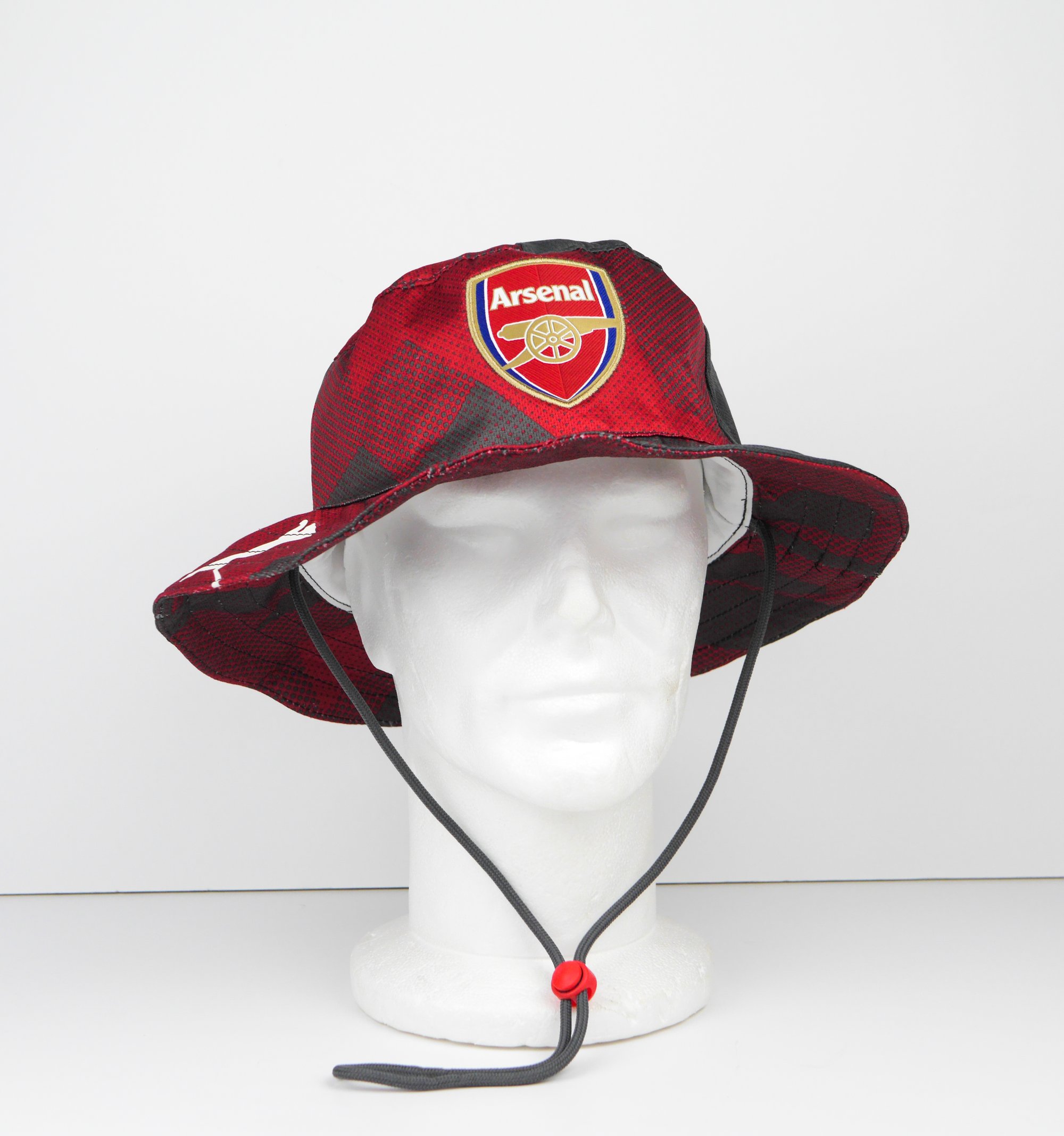 Are you an Arsenal fan? show your passion for your team by owning something no other fan has with our upcycled one-of-a-kind boonie hat! Perfect for match days and festivals!
